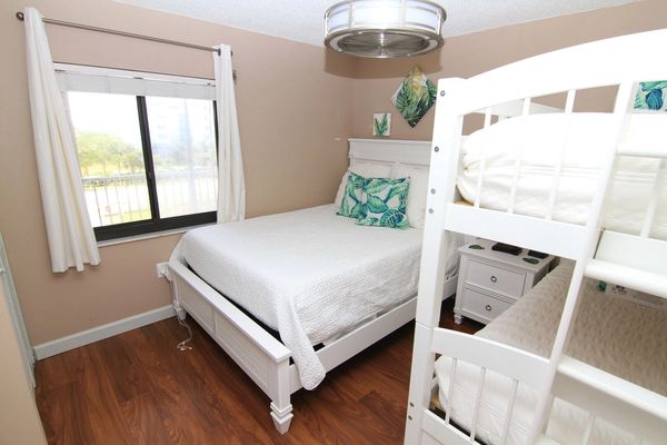 This condo comfortably sleeps 6 guests in beds! The Master suite has a comfy Stearns & Foster King bed and a mounted 55 inch TV. The guest bedroom has been updated with a brand new plush Queen bed, a Twin bunk with built in storage drawers, a 43 inch TV, and an alarm clock with charging ports (great for the kid's devices!) The living room also has a new 75" LED Television to watch your favorite shows.